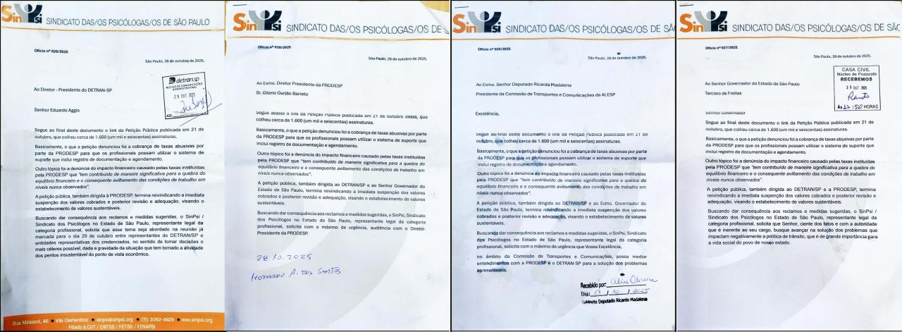 Cópias da Petição foram encaminhadas para o presidente do Detran-SP, Eduardo Aggio, para o presidente da Comissão de Transporte da Alesp (Assembleia Legislativa de São Paulo), deputado Ricardo Madalena, para o presidente da Prodesp, Gileno Gurjão Barreto e para o governador do Estado, Tarcísio de Freitas.
