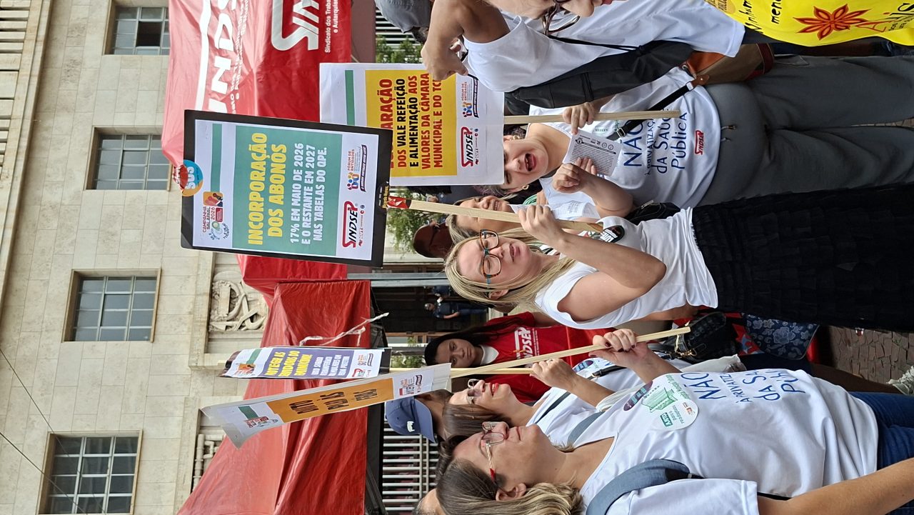 No dia 30mar, novamente centenas de servidores realizaram um ato em frente à Prefeitura para exigir propostas concretas. Nem o que está na lei, e que a própria Prefeitura se comprometeu, como é o caso do Descongela, foi cumprido.